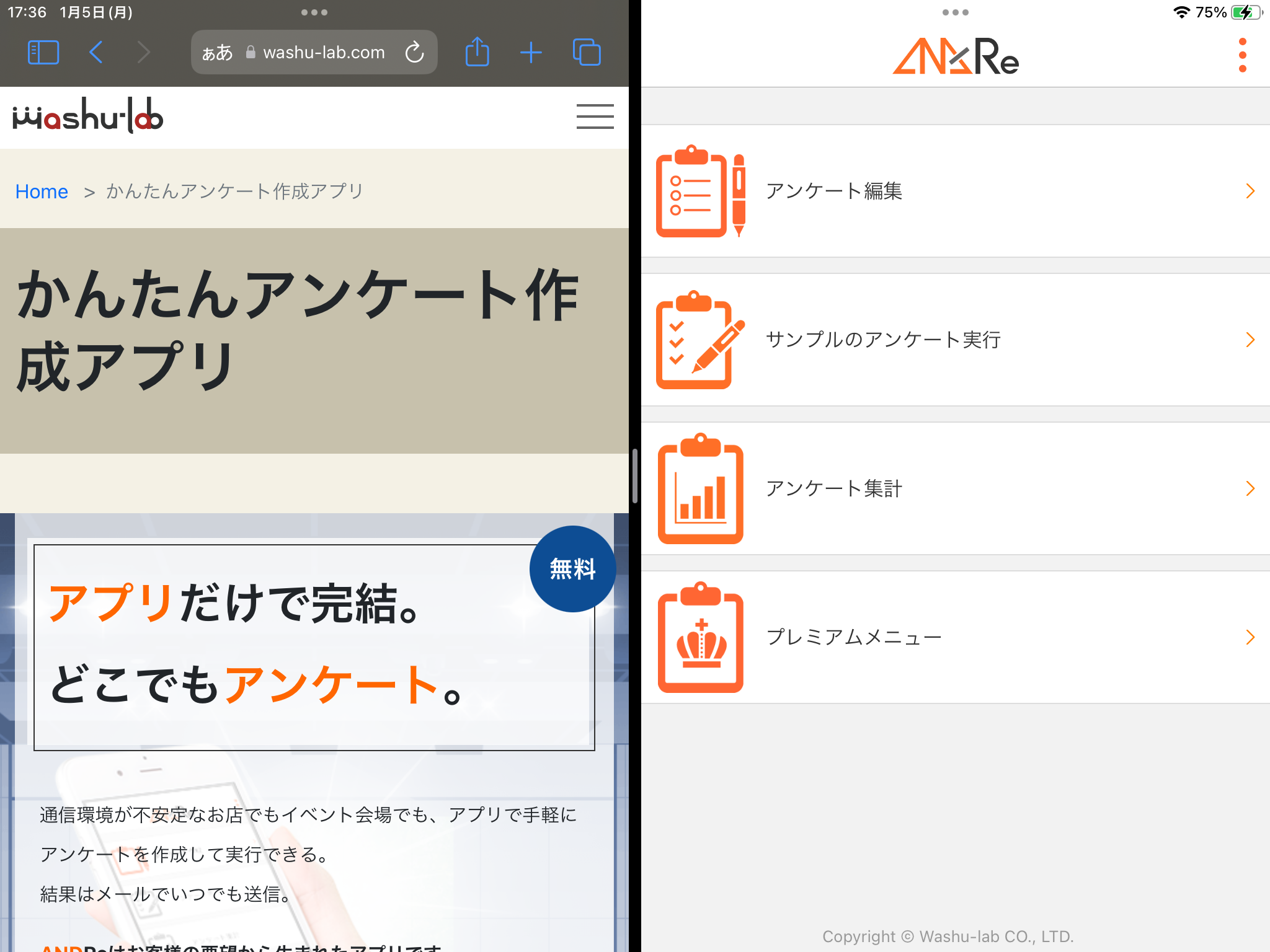 ANDReも対応していますので、ブラウザで何かを検索しながら作業することができます。